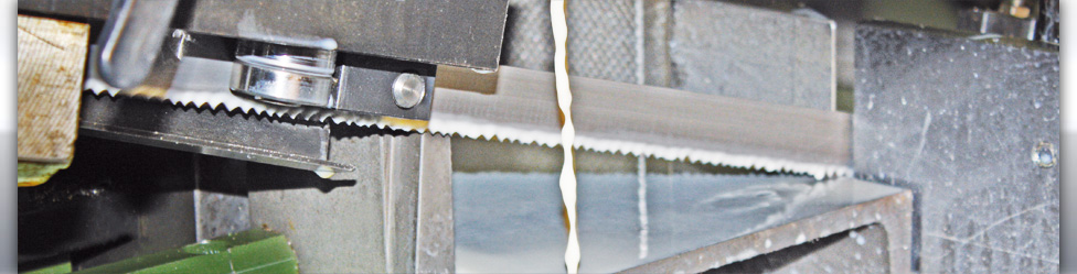 Profile werden mit dem Bandsägeautomat oder mit der Kreissäge auf die Länge und wenn erforderlich in Gehrung geschnitten.